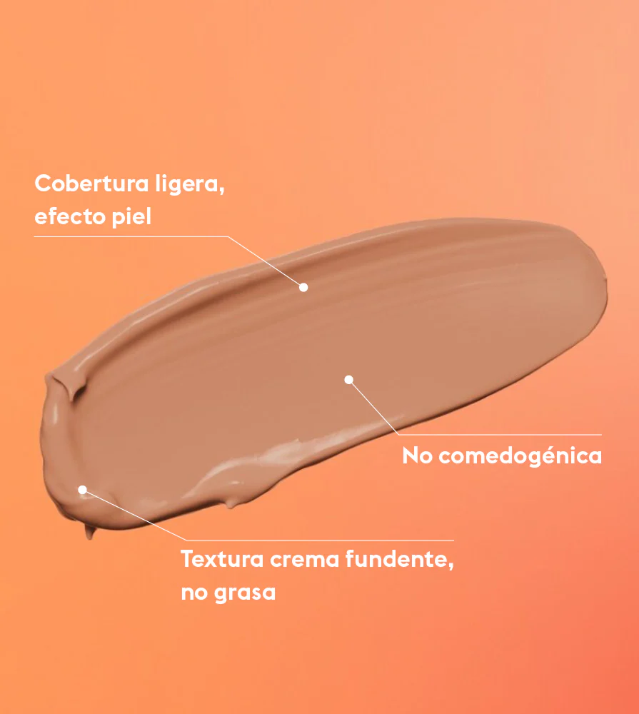 Cobertura ligera y acabado natural. No comedogénico.